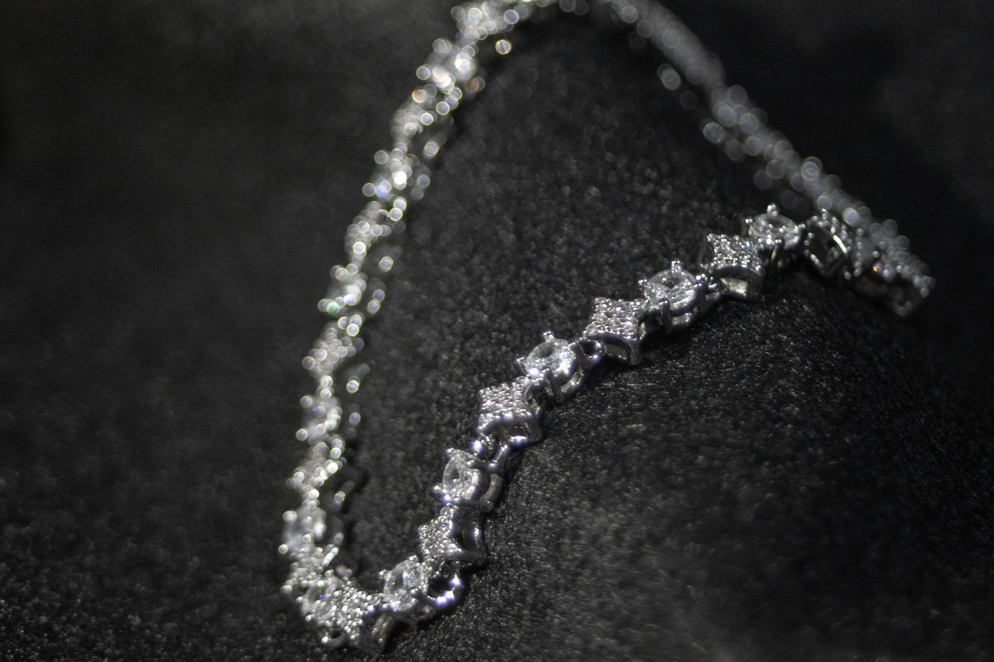GLASS Jewelry 無数のストーンが描く、直線的な輝き。光を受けるたびに鋭く煌めき、首元にクリーンで力強い印象を与えます。 透明感のあるシルバーカラーが、氷のように冷たく研ぎ澄まされた存在感を演出。過度な装飾に頼らず、純粋な輝きで魅せる一本です。 重厚感と洗練を両立したフォルム。単体で主役に、重ね着けでさらに強く。