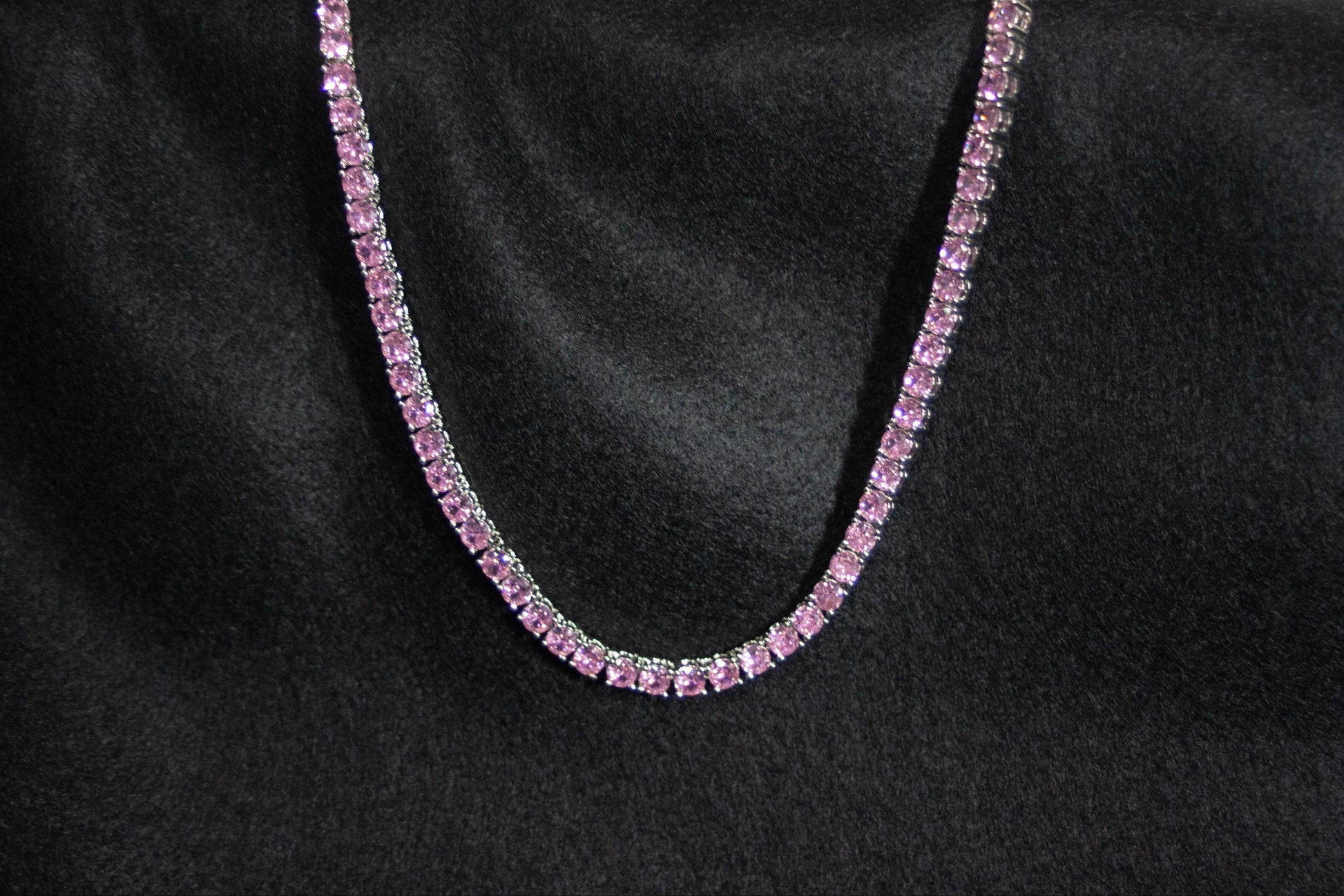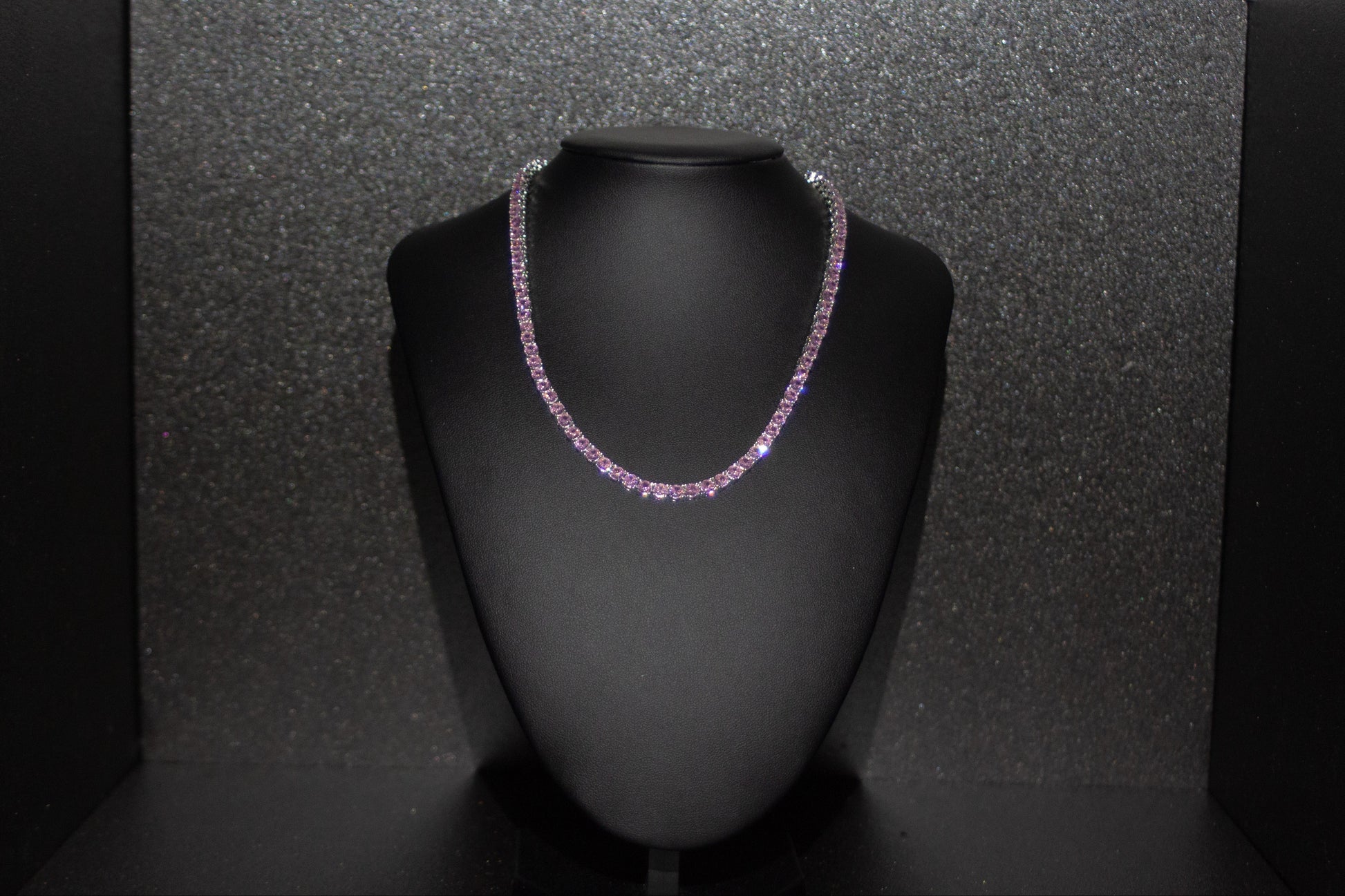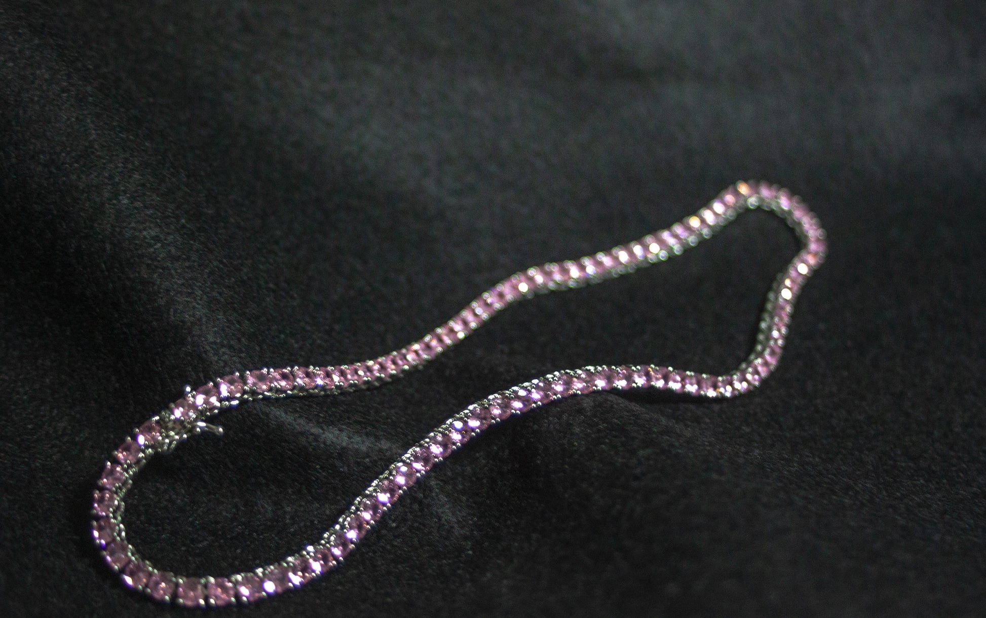 繊細に連なるストーン一石一石が、光を受けるたびに優雅な輝きを放つ50cmテニスチェーン。